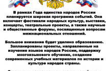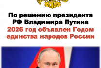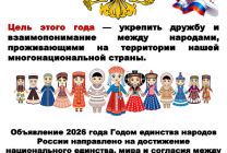 В соответствии с Указом Президента Российской Федерации о № 962 от 25.12.2025 года 2026 год объявлен в России Годом единства народов России. Он проводится в целях укрепления национального единства, мира и согласия между народами Российской Федерации. Год единства призван подчеркнуть, что это многообразие — не разделяет, а обогащает нас. Его ключевая задача — укрепление взаимного уважения и гармонии между всеми гражданами через поддержку уникальных традиций и языков каждого народа. Как неоднократно отмечал российский лидер, сохранение этой многогранной идентичности — основа крепкого и суверенного государства.