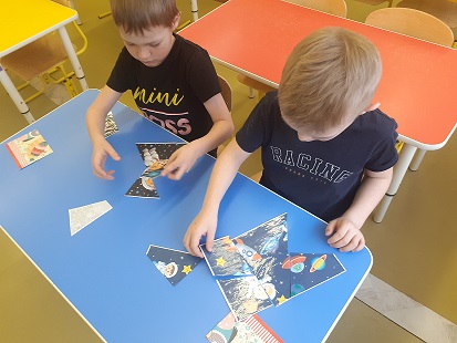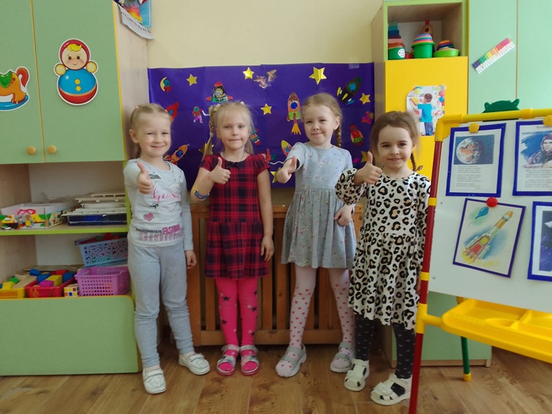 В старшей группе "Непоседы" дети под руководством воспитателя Тихоновой Ольги Николаевны узнали, что одними из первых в космос полетели четвероногие друзья - Белка и Стрелка, а за ними изучать неизведанное полетел и первый человек - Юрий Алексеевич Гагарин. Дети с большим любопытством интересуются всем необъятным миром, который находится за пределами Земли.