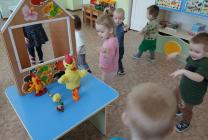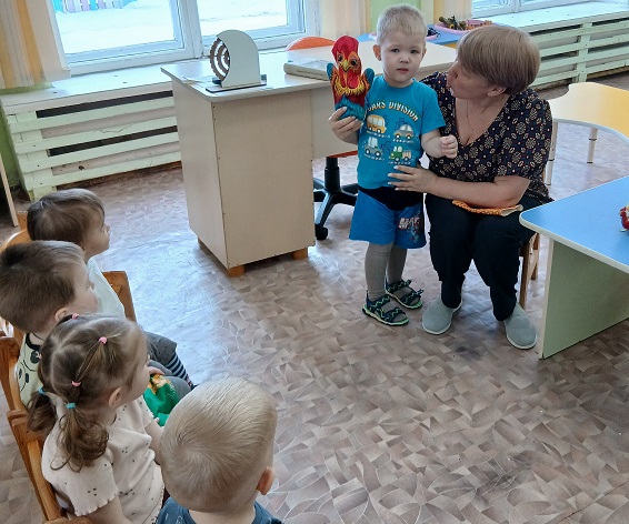 К малышам первой младшей группы "Ягодки" (ул. Ленина, 5) воспитатель-Бодян Лариса Алексеевна пригласила в гости петушка. Дети рассматривали гостя. Играли с ним. Петушок рассказал о своей семье, познакомив с произведением "Петушок с семьёй". Произведения К.Д. Ушинского для малышей развивают нравственные качества, знакомят с окружающим миром, обогащают словарный запас и умение рассуждать.