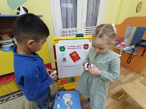 Сегодня в старшей группе «Рябинка» (воспитатель Кормоева Екатерина Владимировна) прошло занятие «12 декабря – День Конституции Российской Федерации». Ребята познакомились с основными законом России, закрепили знания государственных символов проведена беседа с просмотром презентаций: «Конституция и мы», «Флаг России», «Каждый ребенок имеет право». Большой интерес вызвала викторина по сказкам "Какое право нарушили герои сказки?".