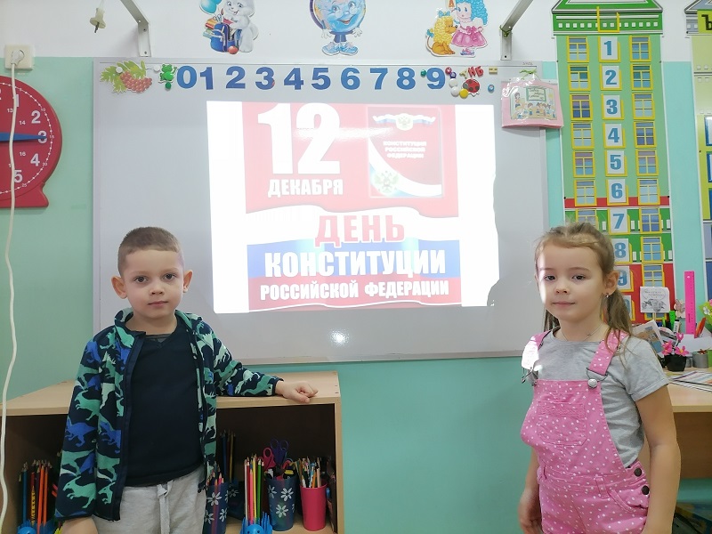12 декабря наша страна отмечает особенный праздник – День Конституции. Уже в дошкольном возрасте мы знакомим детей с основными положениями Конституции, воспитываем любовь, уважение и гордость к Родине, прививаем начальные правовые знания, формируем правовую культуру посредством занятий и игровых мероприятий.