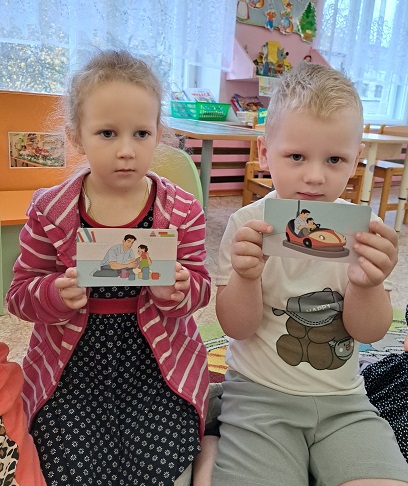 В старшей группе " Почемучки " (воспитатель Морозова Оксана Николаевна) прошло познавательное занятие "Наши папы". Дети отгадывали загадки про пап, называли ласково по имени папу, поиграли с мячом в игры " Что умеет папа делать? ", " Где папа работает? ", "Какой папа?" Ребята принесли фотографии пап и с интересом рассказывали про них. А ещё дети приготовили папам подарочки.