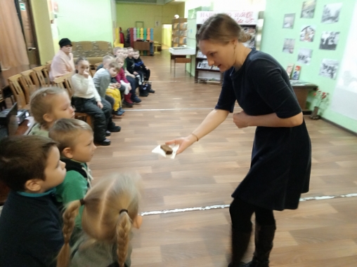 В преддверии Дня полного снятия Блокады Ленинграда подготовительная к школе группа "Малышарики" (воспитатель Тарасова Мария Ивановна) посетила детскую библиотеку. Библиотекарь, Светлана Евгеньевна Герасимова, показала (слайды) и рассказала о блокаде Ленинграда, о Дороге жизни, о том как жили и выживали люди в это страшное время, о жизни и занятиях детей в блокадном городе, о героизме детей в это непростое время. Провела беседу о хлебе, о его роли в жизни ленинградцев. Дети взяли в руки маленький кусочек чёрного хлеба, узнав, что таким был однодневный паёк жителя блокадного Ленинграда. Встреча завершилась Минутой молчания под ленинградский метроном, который звучал в блокадном городе по радио. В группе дети нарисовали рисунки, посвящённые этому дню.