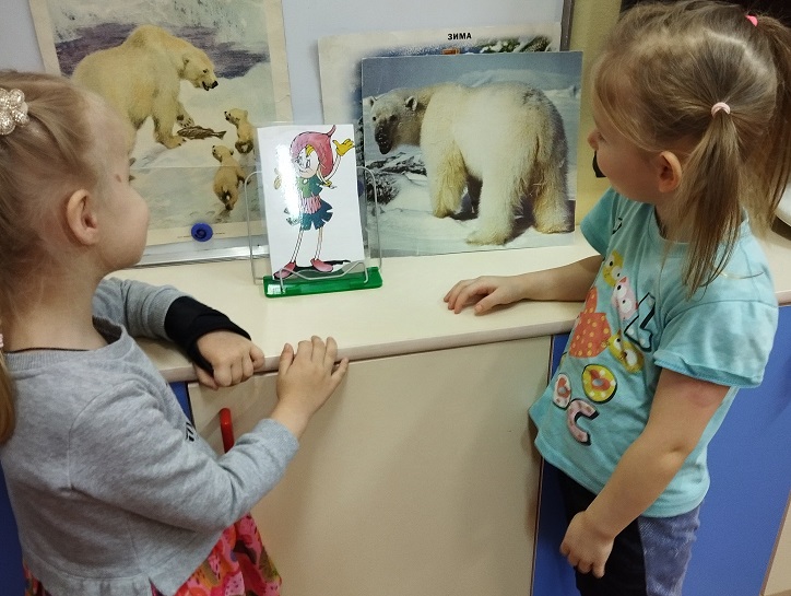 В старшей группе "Солнышко" (воспитатель Богданова Алина Александровна) на занятии дети встретились с Эколятами: Елочкой,Тихоней,Умницей и Шалуном и узнали, как живут белые медведи,чем питаются и как выживают в трудных условиях севера. Посмотрели видеоролик о белых медведях и их среде обитания. А в конце занятия слепили медведя, плывущего на льдине.