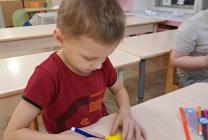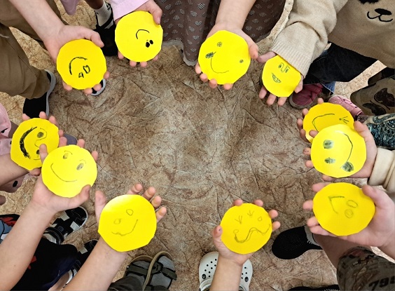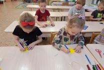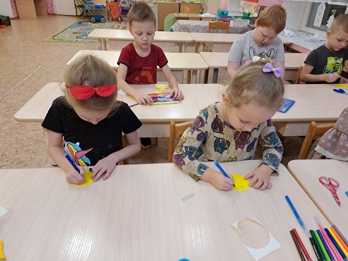 В творческой мастерской мы нарисовали и вырезали смайлики в жёлтом цвете фликеров!