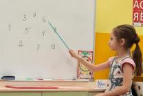 Решали две задачи на сложение и вычитание, выкладывали решение примеров на столах.