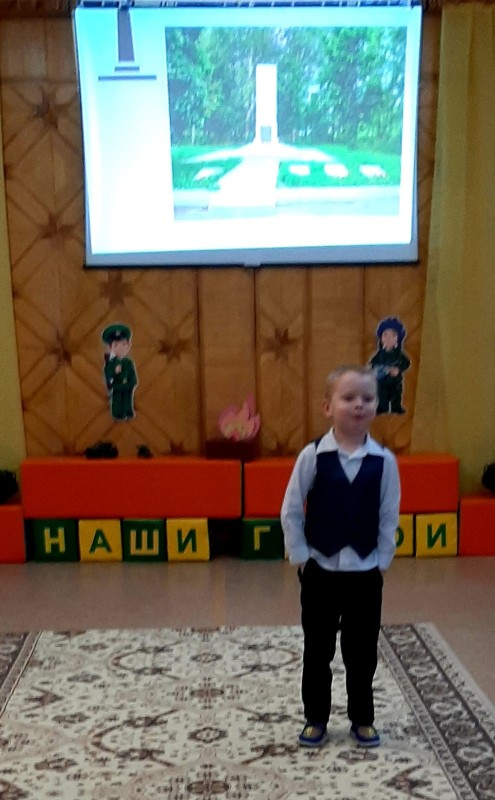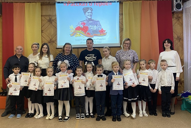 19 ноября прошло мероприятие для воспитанников подготовительных групп "Рябинка" и "Затейники" (ул. Володарского, д.39). Выступающих ребят пришли поддержать родители, бабушки и дедушки. В торжественной обстановке дети рассказывали о героях Великой Отечественной войны, о героях своих семей. В рассказах детей были представлены мемориалы нашего города, района, республики, а также Ленинградской области, Санкт- Петербурга и Мурманска. Ритмическая композиция "Россия" зарядила ребят патриотическим духом. Благодарим родителей, которые подготовили выступления детей. Все участники были награждены памятными дипломами и значками - Абдуллоев Умар, Алексеева Дарина, Благовещенская Ульяна, Веледеева Александра, Гришина Виктория, Гришин Станислав, Кукушкин Александр, Малафеева Мария, Малафеева Камилла, Никитина Екатерина, Ругачев Константин.