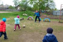 19 мая для малышей второй младшей группы "Крепыши" (воспитатель Ананьева Г.В.) семья Гришиных: Владимир Александрович, Нонна, Давид, Стас, Вика провели мастер класс по футболу. Они познакомили детей с правилами игры в эту увлекательную спортивную игру. Показали интересные приемы ведения мяча. Дети получили огромную радость.