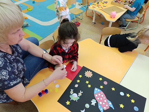 В детском саду с 06 по 10 апреля проводится Неделя космоса. На самых разных мероприятиях дети знакомятся с загадками космического пространства и людьми, которые их изучают и разгадывают.