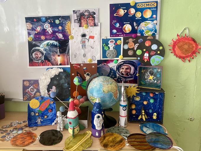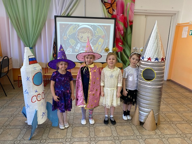 В старшей группе «Рябинка» (ул. Урицкого, 30А) воспитатель Кормоева Екатерина Владимировна на тематическом занятии " Путешествие в Удивительный мир космоса» рассказала о первом человеке, отправившемся покорять космическое пространство — Юрии Гагарине, о собаках Белке и Стрелке, которым удалось до человека побывать в космосе, узнали много интересного об учёных, стоявших у истоков развития космонавтики, о планетах Солнечной системы, о космических полётах. Всей группой с удовольствием поиграли в словесные и дидактические игры «Доскажи словечко», «Посчитай ракеты», «Найди звезду». У некоторых ребят появилась мечта — полететь в космос. Кто знает, быть может, когда-то, для кого-то из них это станет явью. Дети получили много знаний и положительных эмоций. Космическое путешествие удалось на славу!