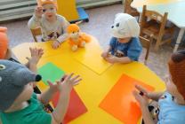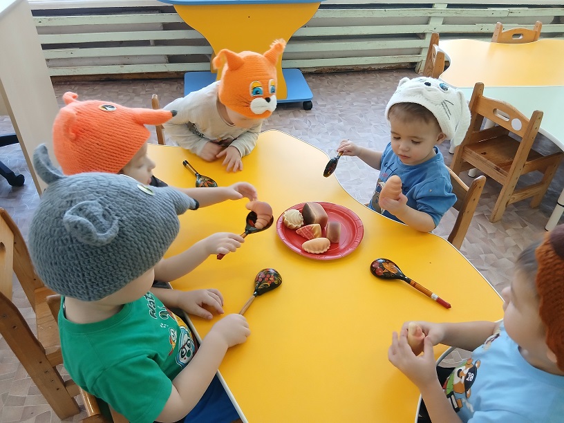 В рамках недели русской культуры, в первой младшей группе "Ягодки" ( воспитатель Бодян Лариса Алексеевна) прошёл "вечер потешек". Потешки-малые фольклорные формы, используются для всестороннего развития детей, способствуют эмоциональному и интеллектуальному развитию. Малыши вспомнили знакомую потешку "Собрались у Миши за столом соседи...". Слепили угощение-орешки белочке. Познакомились и обыграли новую потешку "Сидит белка на тележке". Дети получили много положительных эмоций.