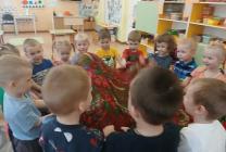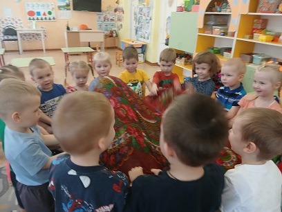 Дети второй младшей группы "Карамельки" (воспитатель Бодян Лариса Алексеевна) узнали много интересного о русских платках. О том, какие они бывают- дефиле "А платки на нас какие- В ярких красках расписные". Как можно использовать платок: пеленали кукол, собирали узелок в дорогу. И конечно играли- "Спрячь меня, платочек мой." Дети получили много положительных эмоций.