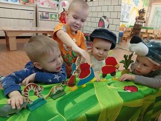 Малыши первой младшей группы А (Красноармейская, 26А) вместе с музыкальным руководителем Ивановой-Плинкоевой Зинаидой Николаевной познакомились с русскими играми-хороводами «Большие, маленькие ножки», «Карусель», «Где же наши ручки?».
