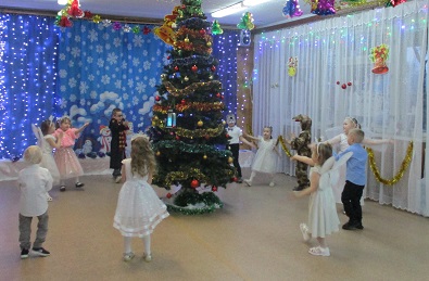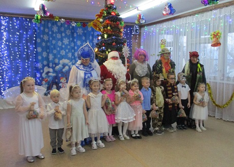 Новогодняя сказка прошла в каждом здании детского сада. Дети групп "Почемучки", "Ромашка", "Рябинка", "Затейники" (ул. Володарского, 39) встретились в сказке с Бабой Ягой, Лешим, Нехочухой, Зимушкой и дедом Морозом. Яркие стихотворения, дружные хороводы, игры со снежками, танцы девочек и мальчиков порадовали детей и гостей.
