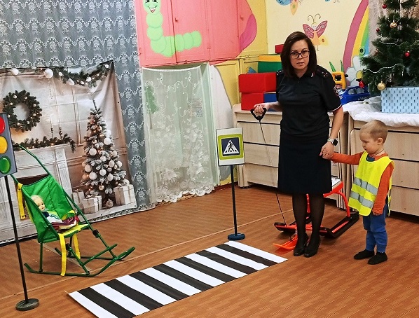 Игровое занятие «Осторожно, дорога!» по безопасности дорожного движения прошло во второй младшей группе «Гномики» (ул. Красноармейская, 26 – воспитатель Яковлева Евгения Геннадьевна) под руководством инспектора по пропаганде БДД Госавтоинспекции Олонецкого района Осиповой Любовь Сергеевны. Дети повторили, как правильно переходить дорогу по пешеходному переходу. Инспектор рекомендовала использовать световозвращающие элементы в зимнее время для безопасности на дороге, когда световой день сокращается, и водителям труднее заметить пешеходов. Любовь Сергеевна напомнила детям сигналы светофора и провела игру «Будь внимателен. Дети повторили дорожные знаки, рассмотрели картинки с различными ситуациями на дорогах и сделали вывод, что играть возле дороги опасно!