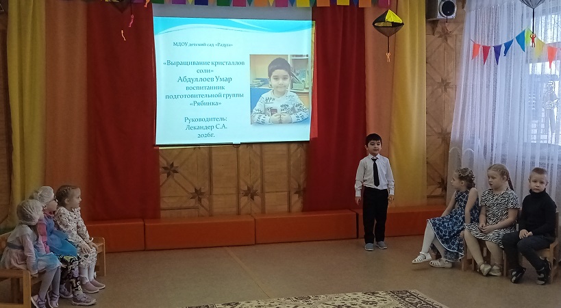 Торжественно прошла конференция для групп "Радуга" и "Почемучки" (здание на ул. Ленина, 5).Воспитанники представили интересные проекты " Удивительные камни", " Цветы среди зимы", "Сравни снежинку и льдинку ". В конце мероприятия все участники: Балашова Кира, Викулин Григорий, Гаврилова Александра, Петрова Мария получили памятные дипломы и подарки. Благодарим педагогов за увлекательное мероприятие и воспитание юных исследователей Богданову Алину Александровну, Загорскую Марию Николаевну, Пяркиеву Наталью Николаевну, Графову Инну Евгеньевну, Магоеву Елену Александровну..