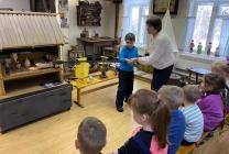 Сегодня дети подготовительных групп «Рябинка» и "Затейники" (воспитатели Зайцева Е.И., Богданова А.А., помощники воспитателей Рямякова О.М., Федорова О.А.) посетили музей по образовательной программе «Дом и что в нем». Группа "Затейники" узнали все про русскую печь, которую ласково называли в старину "Печь-хозяюшка", рассказала им обо всех хитростях печи Туттурева Людмила Васильевна. Воспитанники группы "Рябинка" с экскурсоводом Еленой Николаевной Скобкиной закрепили материал занятия «Печь-хозяюшка» и учились сервировать стол ,как это делала хозяйка в старину, выбирали хозяина и хозяйку дома.Узнали правила сервировки, поочередность посадки за стол, какие предметы посуды ставили на стол в первую очередь.