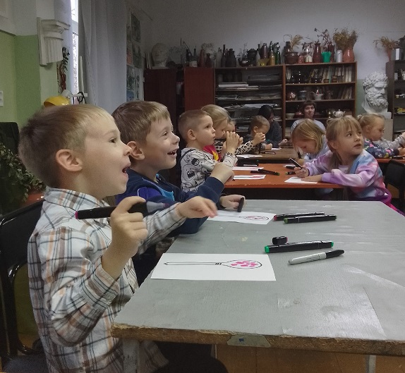 Дошкольников радушно встретил гостеприимный коллектив. Малыши с интересом рассматривали живописные и декоративные работы учащихся и выпускников школы, заглядывали в учебные классы и с нетерпением ждали мастер-класс, который для нас подготовила преподаватель Чанжина Наталья Аркадьевна. Радостные возгласы, удивлённые глаза, радуга детских улыбок заполнили пространство класса. Наши ребята погрузились в мир искусства, узнали про историю возникновения деревянной ложки, познакомились с техниками росписи и изготовлением ложек. Юные искусствоведы попробовали себя в роли мастеров и художников и сами нарисовали и расписали чудесные ложки.