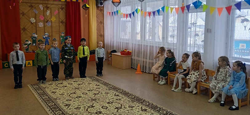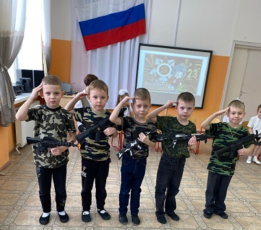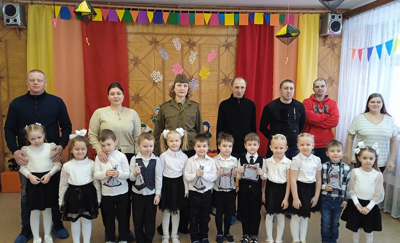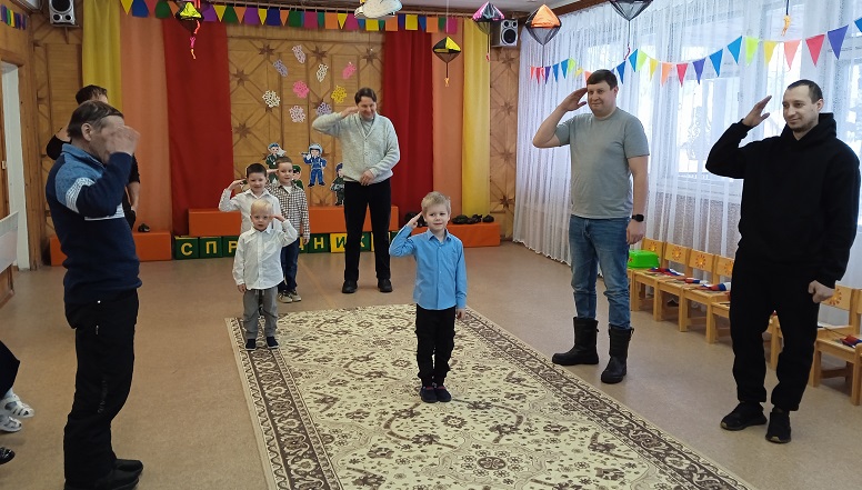 День защитника Отечества - это праздник воинской доблести, чести, праздник наших пап, дедушек, братьев. В детском прошли торжественные мероприятия, посвященные такому важному празднику для нашей страны. Совместно с папами и дедушками ребята состязались в ловкости, быстроте, смекалке. Исполняли песни об Армии, танцевали, и, конечно, выразительно читали стихи. На таких мероприятиях у детей воспитывается чувство гордости за Российскую Армию, желание быть похожими на сильных, смелых и находчивых защитников Отечества. А ну, мальчишки, мальчишки ребятишки, будущее Армии страны . Бравые солдатики, сыновья и братики Родине служить должны! Замечательные утренники провели музыкальные руководители Дмитриева Ирина Борисовна, Иванова-Плинкоева Зинаида Николаевна, Кошкина Любовь Ивановна, Плинкоева Надежда Николаевна и воспитатели дошкольных групп..