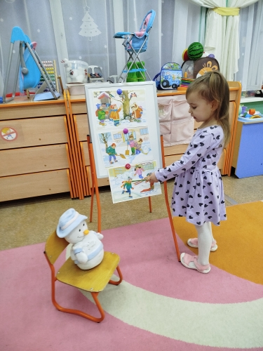 В подготовительной группе "Малышарики" (ул. Красноармейская 16 - воспитатель Тарасова Мария Ивановна) на тематическом развлечении "Правила дорожного движения со Снеговиком" дети встретили озорного Снеговика. Вместе с инспектором ОГИБДД Осиповой Любовь Сергеевной вспомнили сионалы светофора, играли в эстафеты, создали композицию "Снеговик-светофор".