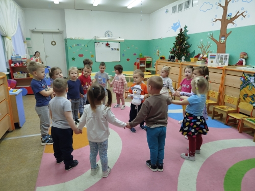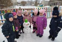 Во второй младшей группе "Колокольчик" (ул. Урицкого, 30А)с воспитателем Кекшоевой Тамарой Ивановной ребята поздравляли Снеговика с праздником: рассказали о зимних забавах, водили хоровод, играли в снежки, прятались в сугробе, катали снеговиков на санках. Малыши смастерили для Снеговика много друзей. А на прогулке слепили снеговика из снега.