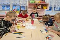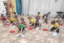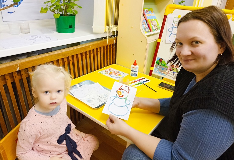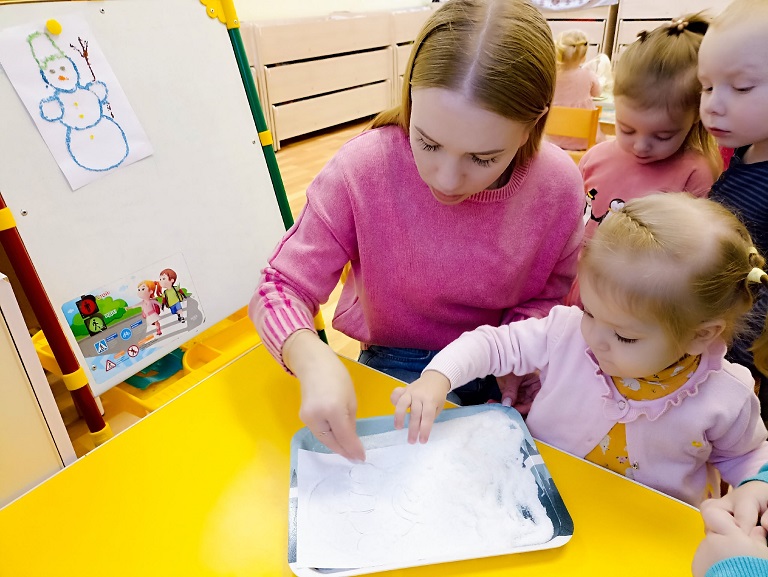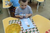 В первой младшей группе "Одуванчик" (ул. Красноармейская, 26А) прошло замечательное развлечение и мастер-класс " Весëлый снеговик". Дети с родителями под руководством воспитателя Борисовой Ирины Викторовны смазывали контур рисунка клеем, посыпали солью и раскрашивали акварелью.
