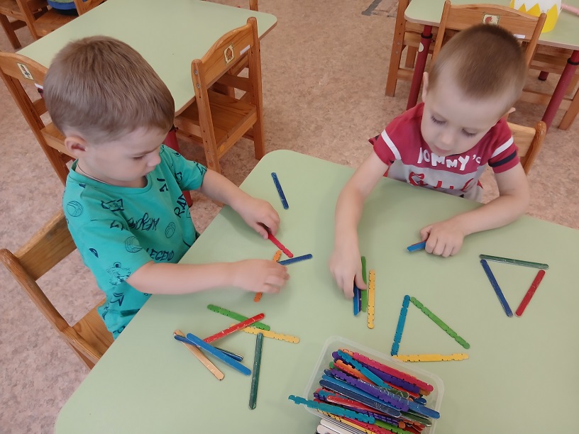 Дети первой младшей группы "Карамельки" с царицей Математики (воспитатель Бодян Лариса Алексеевна), вспомнили знакомые геометрические фигуры: собирали их из частей, из палочек, искали предметы похожие на фигуры. Математика это увлекательно.
