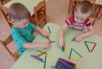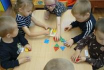 Во второй младшей группе "Гномики"(воспитатель Яковлева Евгения Геннадьевна) на занятии дети закрепляли названия геометрических фигур, сортировали их по форме, определяли по величине, выкладывали фигуры с помощью крышечек, развивая мелкую моторику. Дети с удовольствием играли в дидактические игры " Найди такую же фигуру", "Найди свою дорожку", "Разложи фигуры правильно".