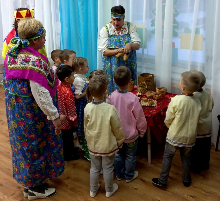 В этом учебном году в детском саду активно решается задача "Приобщать детей к истокам народной культуры". В связи с этим, 7 декабря в средней группе "Березка" (музыкальный руководитель Шлыкова М.В.,.воспитатель Артемьева Е.Ю., помощник воспитателя Арефьева Е.В.) прошло открытое мероприятие - фольклорное развлечение "Веселая ярмарка". Дети окунулись в атмосферу настоящей русской ярмарки: играли, пели, отгадывали загадки, читали потешки с веселым Скоморохом. Познакомились с историей рождения Дымковской игрушки. Украшением праздника стали яркие костюмы, выставка изделий из бересты, дымковские игрушки.В завершении праздника Скоморох угощал всех: и детей, и гостей. Веселая ярмарка никого не оставила равнодушным: было интересно, весело, забавно и радостно!
