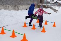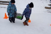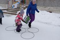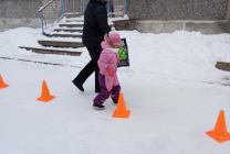 В подготовительной группе "Затейники" участниками были дети, родители и дедушки, которые под торжественную музыку прошли строем и выстроились в команды. В роли командующего выступила инструктор по физической культуре Андреева Мария Ивановна. Игра была построена в форме эстафеты по этапам: «Разведчики», «Меткий стрелок», «Пройди через болото», «Полоса препятствий», «Перенеси бойца», "Минное поле". У каждой команды маршрут был свой, но завершиться он должен в «штабе», именно туда