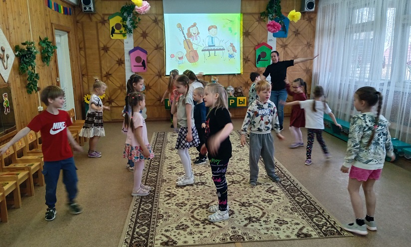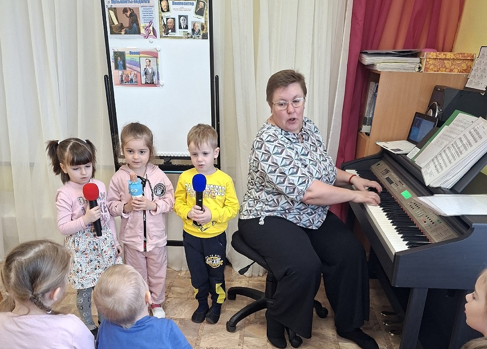 Воспитанников групп «Почемучки», «Рябинки» и «Затейники» музыкальный руководитель Плинкоева Надежда Николаевна познакомила с музыкальными профессиями: композитор, музыкальный организатор, настройщик музыкальных инструментов, ди-джей, музыкант на радио и телевидении, и другими. Дети побывали в роли артистов: пели в микрофоны в хоре, исполняли танцы, играли на музыкальных инструментах. В завершении дети играли в игру «Что лишнее в профессии», «Угадайку». Дети быстро и четко обосновали свои ответы. «День искусств» получился очень насыщенным и интересным.