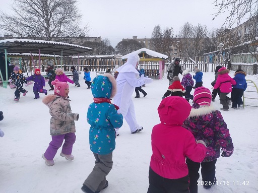 На участке ул. Ленина 5 спортивное развлечение прошло для всех групп, подготовила его инструктор по физической культуре Борисевич Наталья Леонидовна. Дети с удовольствием соревновались, играли, катались на лыжах, на ватрушках. Все получили положительные эмоции от общения друг с другом.