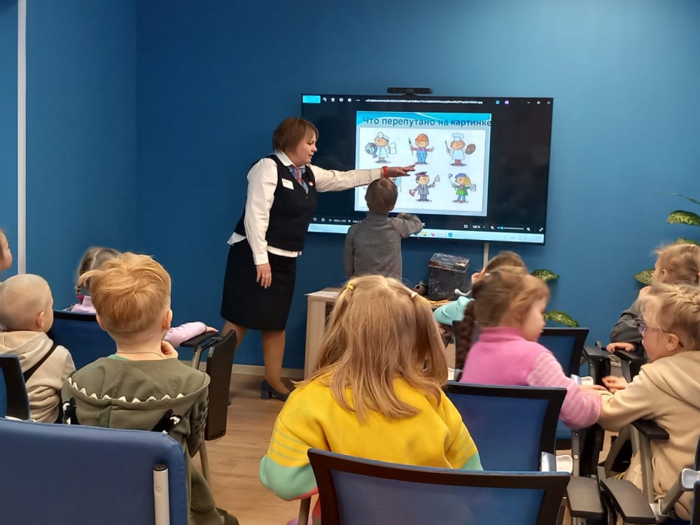 5 и 6 февраля подготовительные группы "Рябинка" и "Затейники" побывали в кадровом центре Олонецкого района. Экскурсию и беседу в доступной, игровой форме провела специалист Центра Андреева Наталья Викторовна. Знакомство детей с трудом взрослых за пределами детского сада позволяет развивать у них представления о сути и значении трудовых действий, об общественном устройстве жизни в общем. В группе дети нарисовали рисунки о своей будущей профессии и впечатления об экскурсии.