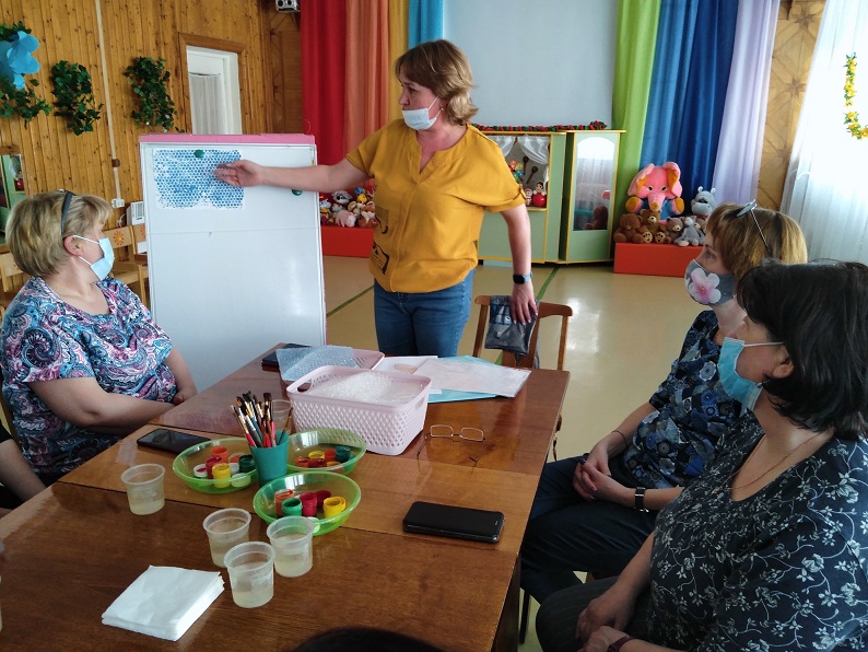 23 марта в детском саду (ул. Володарского, д.39) прошло занятие в "Школе дошкольных наук". Мастер-класс по нетрадиционному рисованию провела воспитатель подготовительной группы "Андреева Алевтина Анатольевна. Для педагогов была представлена техника рисования пузырчатой пленкой. Эта техника используется для создания рельефного, текстурного изображения. Все вместе создали настоящие картины - "Ананас" и "Осеннее дерево".