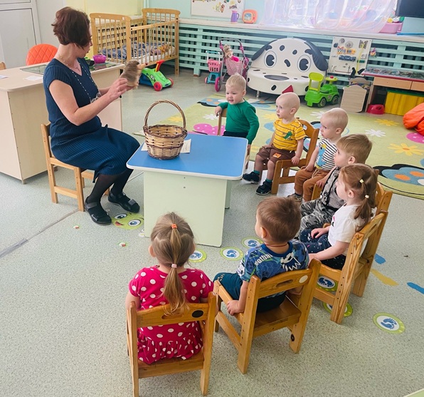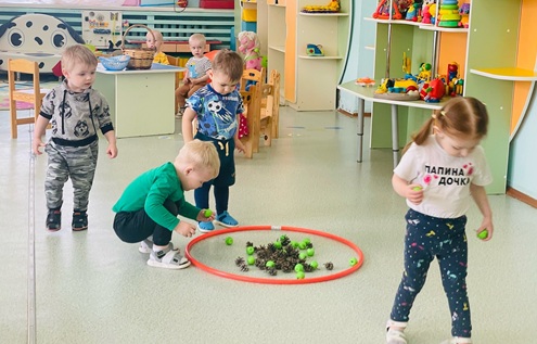 Виглиева Елена Тойвовна вместе с малышами группы раннего возраста "Ягодки" отправились путешествовать с ёжиком, помогли ему собрать шишки и ягодки, а после нарисовали ёжику в подарок рисунки.