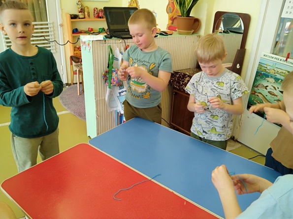 Ребята подготовительной группы "Затейники" под руководством воспитателя Блинковой Людмилы Александровны узнали о тех навыках, которые должны были иметь к 7 годам дети в карельской семье. Практические игры и упражнения помогли детям убедиться, как это сложно уметь вязать рыбацкую сеть, прясть шерсть, ловить рыбу. Все задания вызвали эмоциональный отклик у ребят и желание научиться данным навыкам.