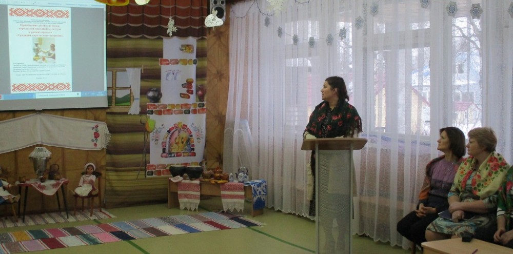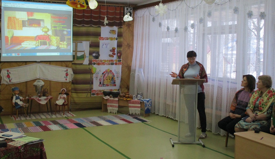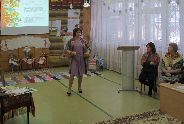 17 января в детском саду состоялся тематический педагогический совет "Приобщение детей к истокам народной культуры". Оформление зала, народная музыка, русские народные платки погружала участников в атмосферу народной культуры. На педсовете были подведены итоги работы педагогического коллектива над годовой задачей по приобщению детей к истокам народной культуры, заслушаны результаты реализации проектов "Карельская горница" (Блинкова Л.А., "Традиции карельского чаепития" (Лукина А.В.), "Бабушкин сундук" (Тимофеева З.С., Генкель С.Ю.), подведены итоги смотра-конкурса "На лучшее методическое пособие по приобщению детей к карельской культуре" (победители: Германова Е.Д., тимофеева З.С., Блинкова Л.А., Корнышева Т.В.). Все педагоги стали участниками интеллектуальной викторины "О русских обычаях, традициях и народном творчестве". Каждый получил небольшой сюрприз - карамельный, ярмарочный, русский леденец.