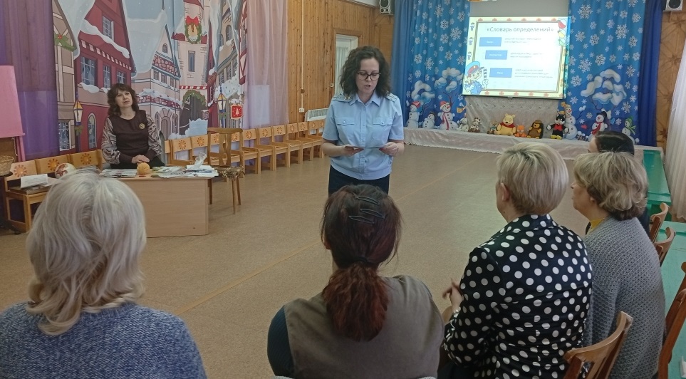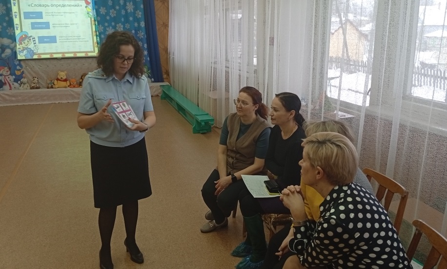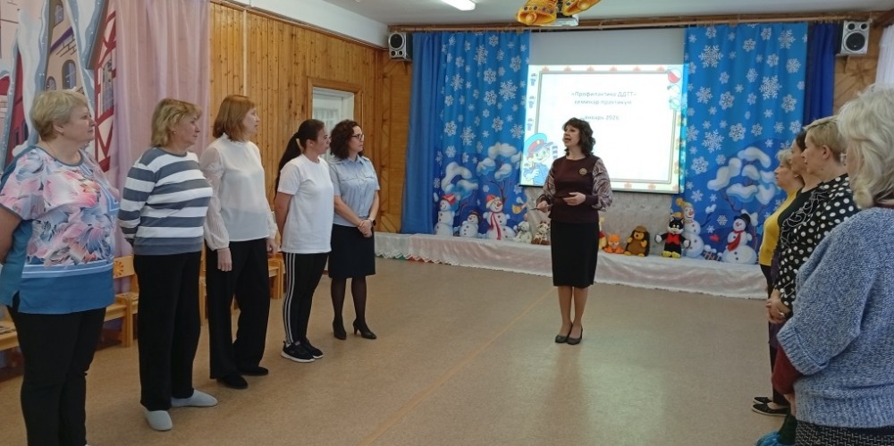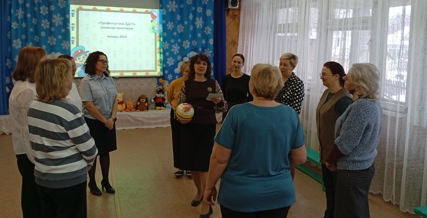 В детском саду прошли мероприятия для педагогов «Профилактика детского дорожно-транспортного травматизма» с участием инспектора по пропаганде БДД ОГИБДД Осиповой Л.С. (ул. Володарского, 39; ул. Ленина, 5). На семинаре-практикуме педагоги повторили современные игровые приемы работы с детьми по изучению правил дорожного движения (старший воспитатель Кочакова Елена Александровна).