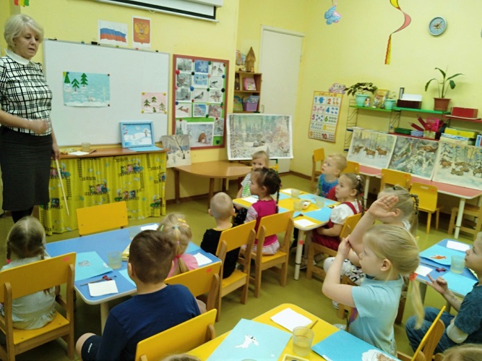 В средней группе "Почемучки" воспитатель Ананьева Галина Васильевна провела занятие по образовательной области "Художественно-эстетическое развитие", разделу Рисование. Закрепив различные приемы рисования деревьев, дети самостоятельно придумывали зимнюю картинку - рисовали елочки, кусты, сугробы, снежинки.