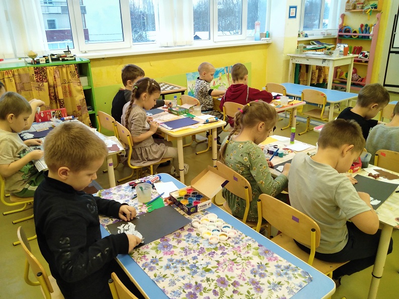 Дети подготовительной группы проявляли свои творческие способности на занятиях по образовательной области "Художественно-эстетическое развитие"). Под руководством Корнышевой Татьяны Владимировны дети нарисовали северное сияние и познакомились с новой техникой рисования. Вместе с Алиной Александровной Богдановой сумели нарисовать настоящие "Зимние пейзажи".