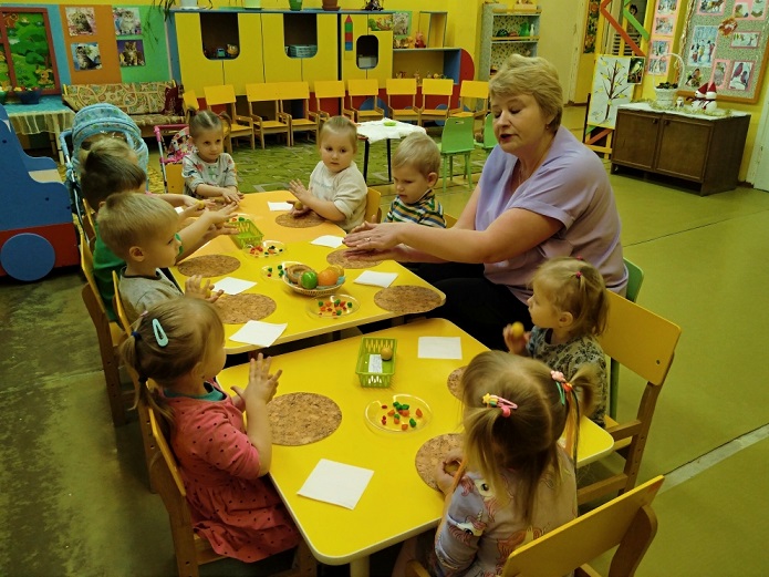 Во второй младшей группе "Крепыши" прошло занятие "Угощение для Мишутки" по образовательной области "Художественно-эстетическое развитие", воспитатель Морозова Оксана Николаевна. Дети лепили угощения разными способами, которые повторили в начале занятия. Мишутка смог угостить всех друзей.