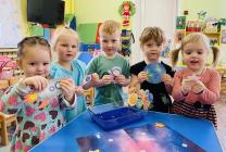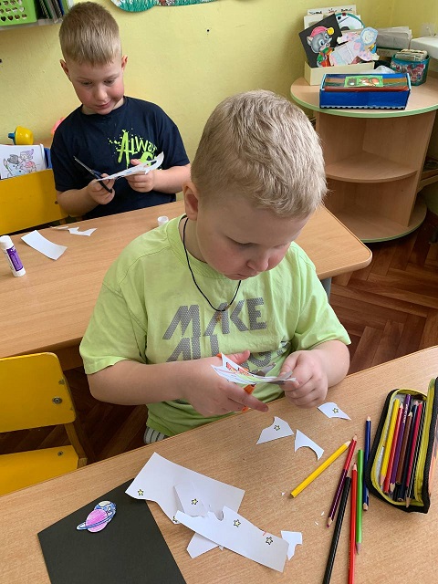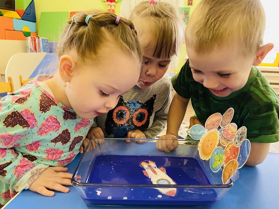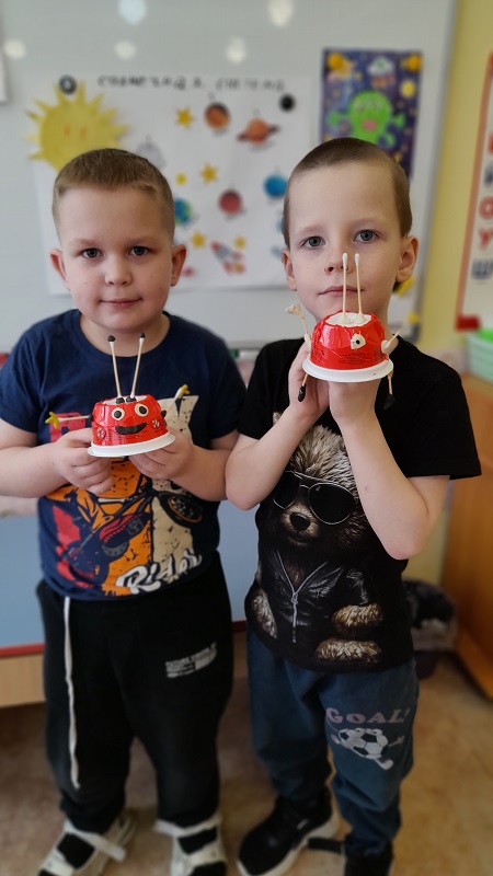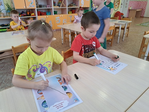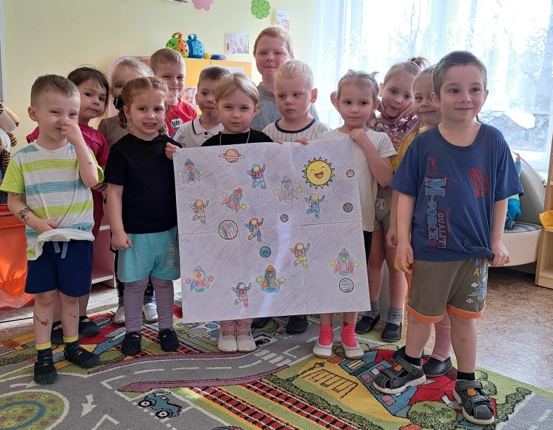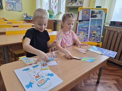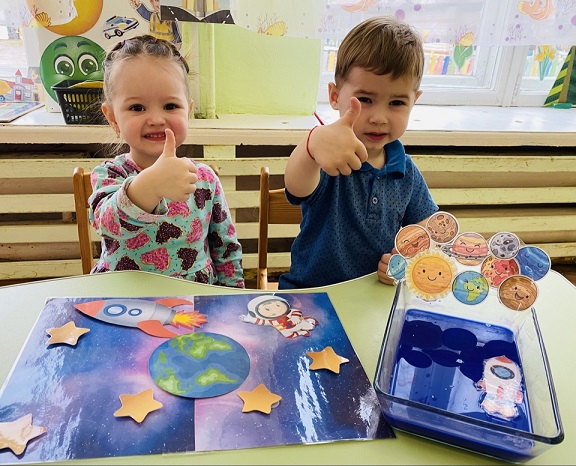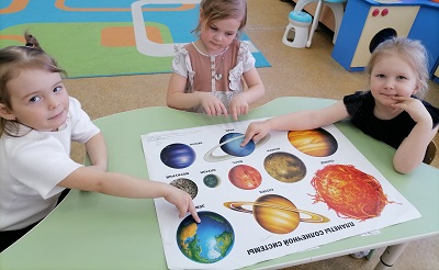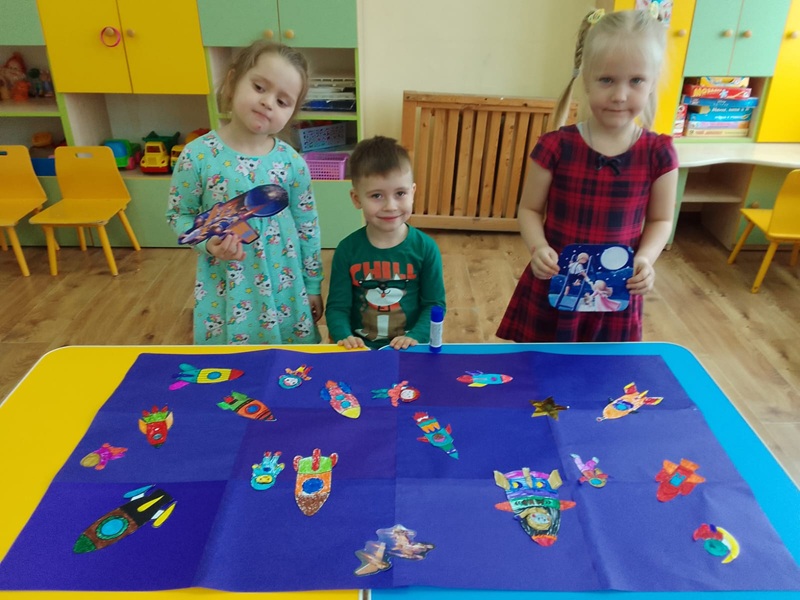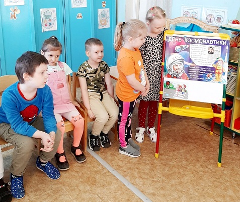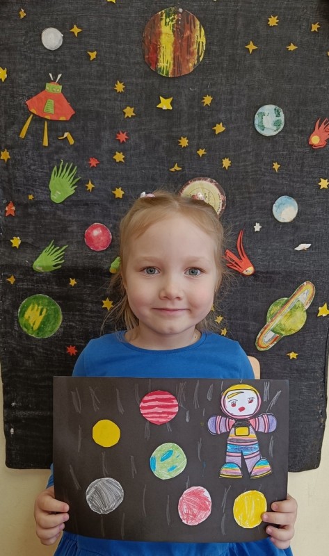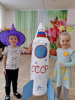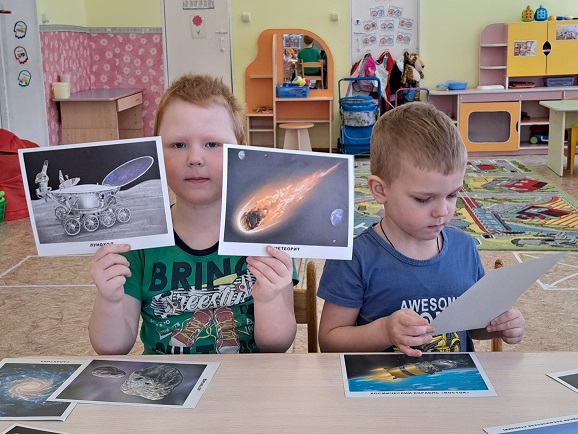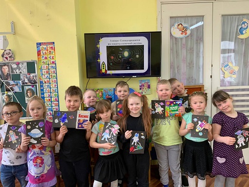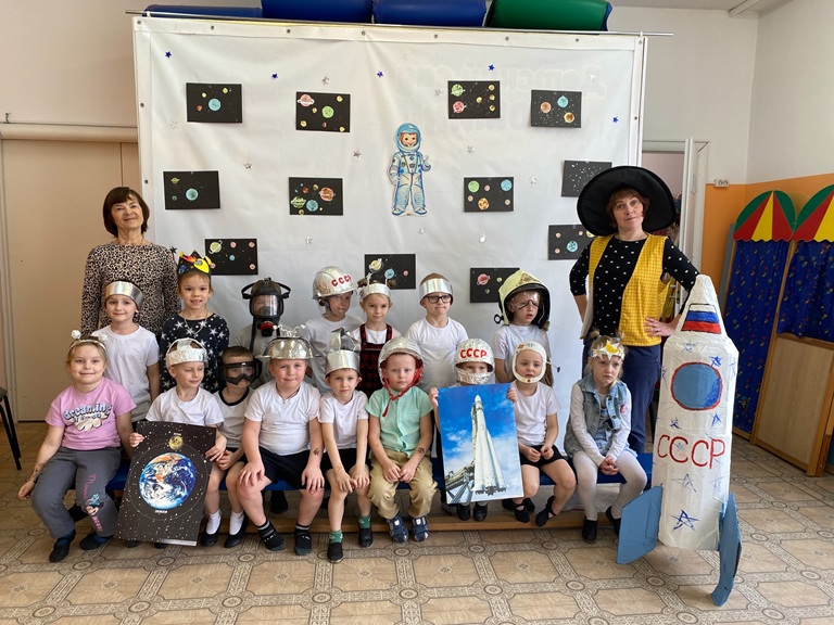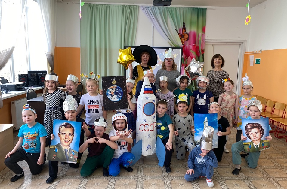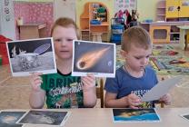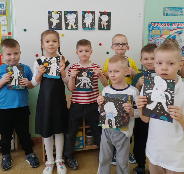 В старшей группе "Непоседы" дети под руководством воспитателя Тихоновой Ольги Николаевны узнали, что одними из первых в космос полетели четвероногие друзья - Белка и Стрелка, а за ними изучать неизведанное полетел и первый человек - Юрий Алексеевич Гагарин. Дети с большим любопытством интересуются всем необъятным миром, который находится за пределами Земли.