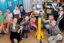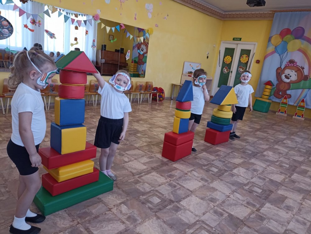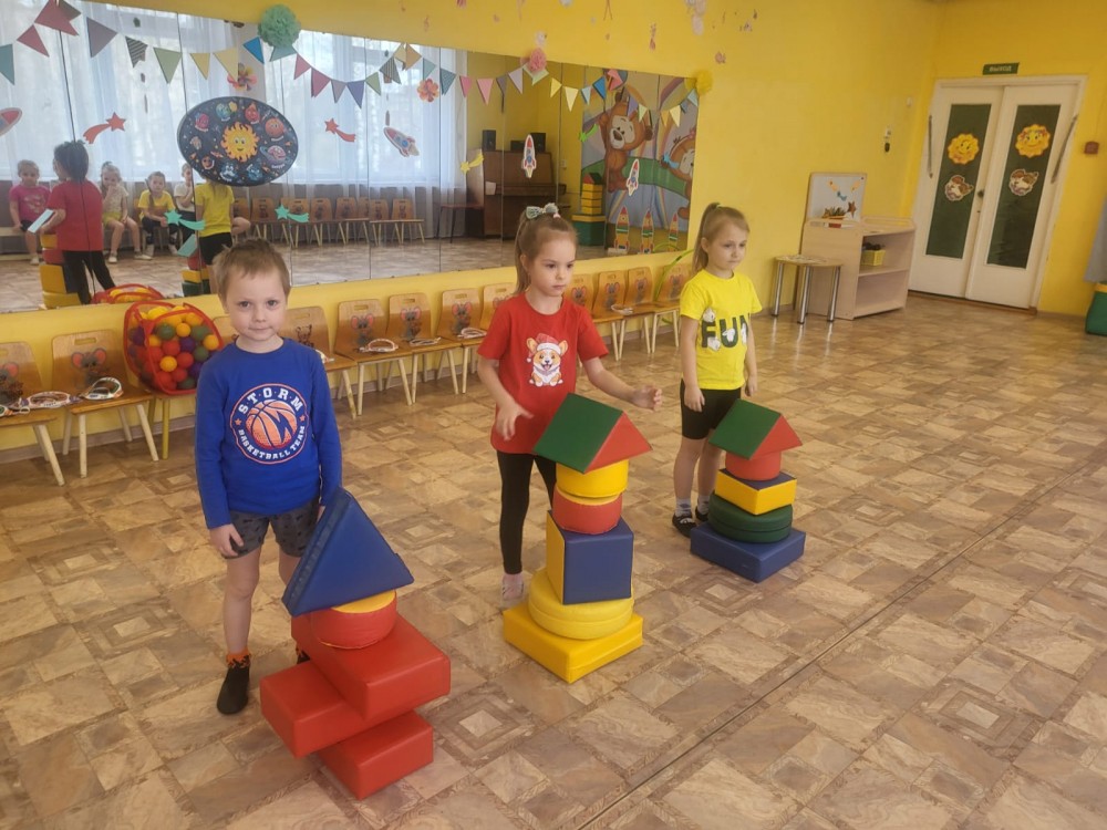 В группах "Солнышко" и "Непоседы" прошла тренировка "юных космонавтов" (инструктор по физической культуре Артемьева Елена Юрьевна). Выполняли упражнения с мягкими модулями, строили космические ракеты, собирали цветные "метеориты", отправлялись в полет.