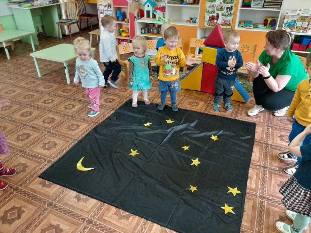 Малыши первой младшей группы «Карамельки» (воспитатель Кириллова Елена Николаевна) познакомились с российским праздником- День космонавтики с космосом. С ребятами была проведена беседа «Наша планета Земля», «Что такое космос?». Дети узнали, что космос-это очень высоко, туда не залетают птицы, там не могут летать самолёты. Небо там совсем чёрное, и воздуха там нет. На один день ребята решили стать космонавтами и отправиться в космос. Далёкие звёзды в небе горят. зовут они в гости умных ребят. Собраться в дорогу недолго для нас и вот мы к полёту готовы сейчас! Интересным и познавательным получился день.