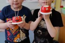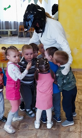 В первой младшей группе «Солнышко» (воспитатель Лаврентьева Ирина Андреевна) прошло познавательное развлечение «Приключения с Лунтиком». В гости к ребятам прилетел космический пришелец -Лунтик, который родился на Луне. Вместе с Лунтиком малыши выяснили, что на Луну можно добраться на ракете и построили свой первый космический корабль. Дети попробовали себя в роли дизайнеров космических скафандров, раскрасили их в яркие цвета. Малыши с большим восторгом играли с Лунтиком, представляли себя юными космонавтами и «летали» в космос. Закончилось развлечение общим космическим танцем «Если очень захотеть, можно в космос полететь».