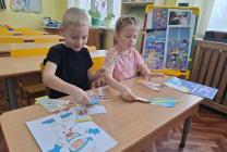 Дети группы "Затейники" с воспитателем Бодян Ларисой Алексеевной играли в космос: собирали космические картинки, запускали ракету. Вместе отправили в космическое путешествие Белку и Стрелку, сделав аппликацию.