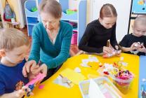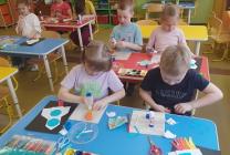 В средней группе "Ромашка" (воспитатель Андреева Алевтина Анатольевна) прошла творческая мастерская по изготовлению коллективного панно "Мы о космосе мечтаем".