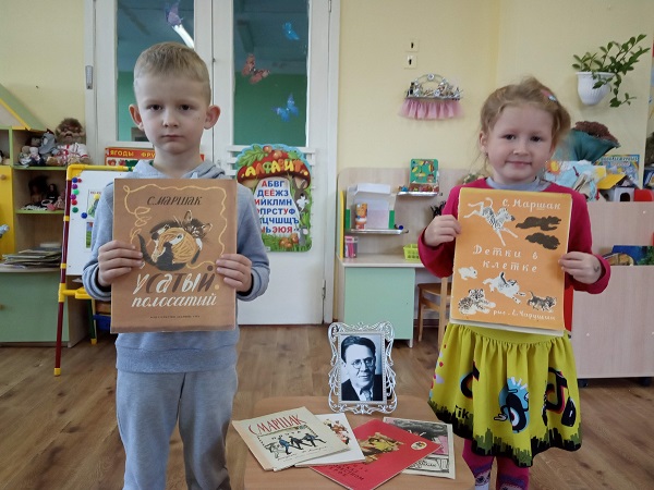 Дети средней группы "Почемучки" (воспитатель Блинкова Л.А.) вспомнили уже известные стихотворения и познакомились с новыми произведениями детского писателя. Веселые стихи очень понравились ребятам. Дети старшей группы "Непоседы" (воспитатель Корнышева Т.В.) слушали стихи поэта и инсценировали сказку "Теремок". Дети подготовительных групп "Затейники" (воспитатель Лазаренко Е.А.), "Незабудка" (воспитатель Генкель С.Ю.) стали участниками викторины по сказкам Самуила Яковлевича: рассматривали иллюстрации к сказкам, отгадывали загадки, читали стихи из серии "Детки в клетке", обсудили "Рассказ о неизвестном герое".