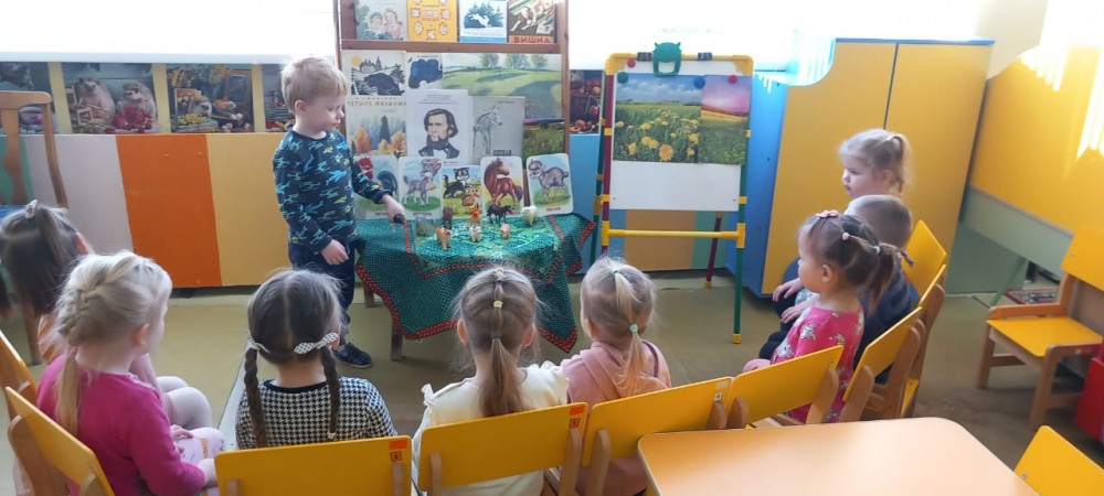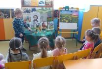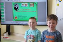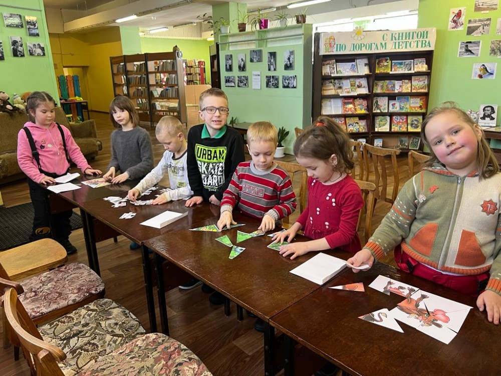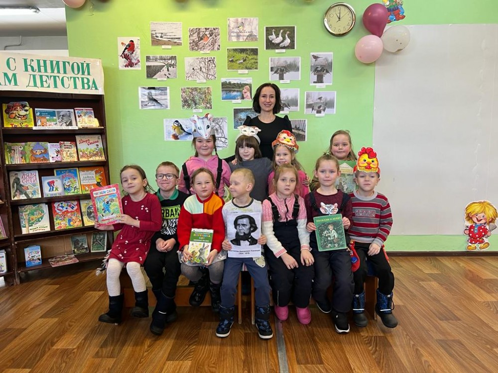 Дети старшей группы "Непоседы" (воспитатель Богданова А.А.), подготовительной группы "Затейники"(воспитатель Лазаренко Е.А.), подготовительной группы "Василек" (воспитатель Тихонова А.Г.) на интерактивном занятии в Олонецкой детской библиотеке, которое провела Евстратова Наталья Геннадьевна познакомились с биографией писателя, приняли участие в инсценировках произведений "Умей обождать" и "Два козлика", собирали пазлы и называли произведения К.Д.Ушинского.