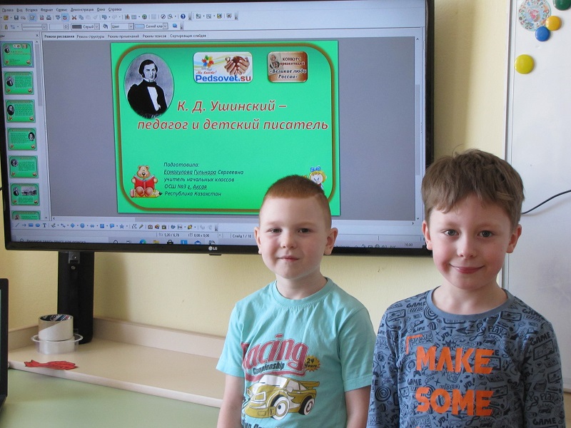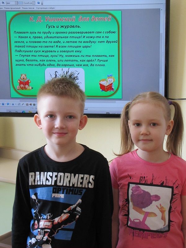 В подготовительной группе «Фиалка» (воспитатель Лекандер С.А.) дети просмотрели презентацию о творчестве педагога и писателя, читали и беседовали по сказкам К.Д.Ушинского.